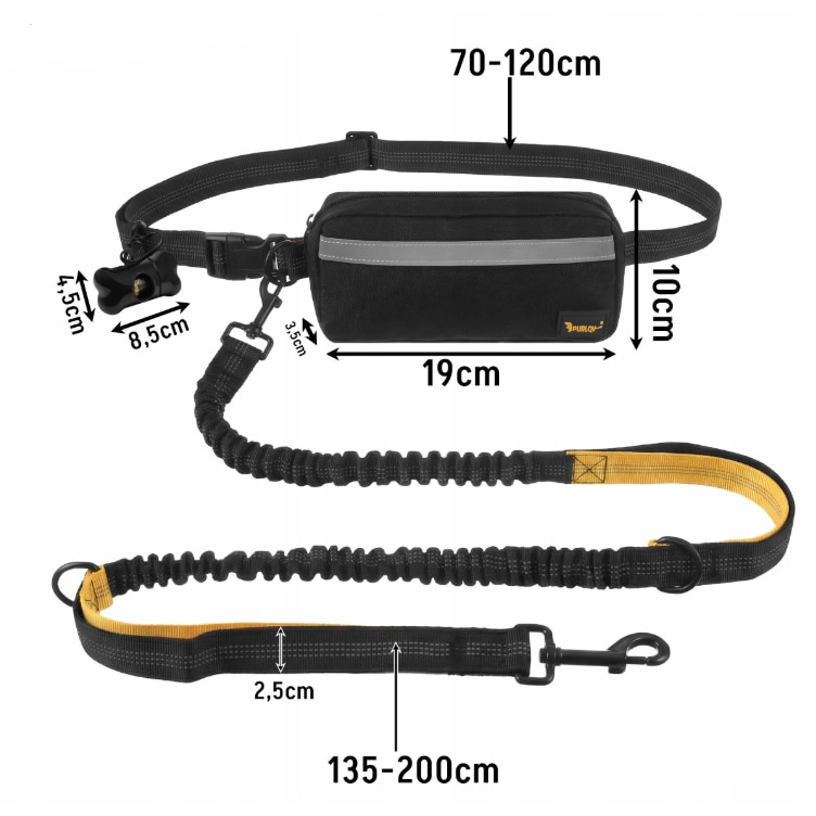 Lesa alergare caini cu centura hands-free, amortizor soc, reglabila si reflectorizanta, cu borseta detasabila, pentru mers si jogging, caini pana la 50 kg