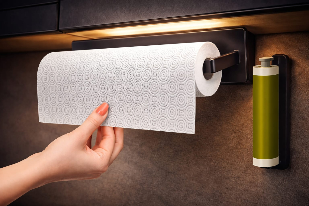 Utilizare versatila – serveste drept suport pentru rola de hartie, folie si prosoape multipluse, reducand necesitatea obiectelor separate.